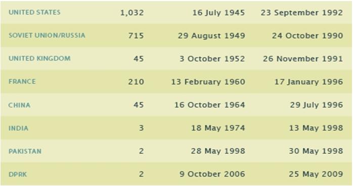 Bảng tóm tắt các vụ nổ hạt nhân do các quốc gia hạt nhân thực hiện