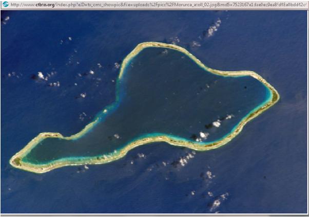 Địa điểm thử hạt nhân của Pháp trước đây tại đảoMoruroa, nam Thái Bình Dương.
