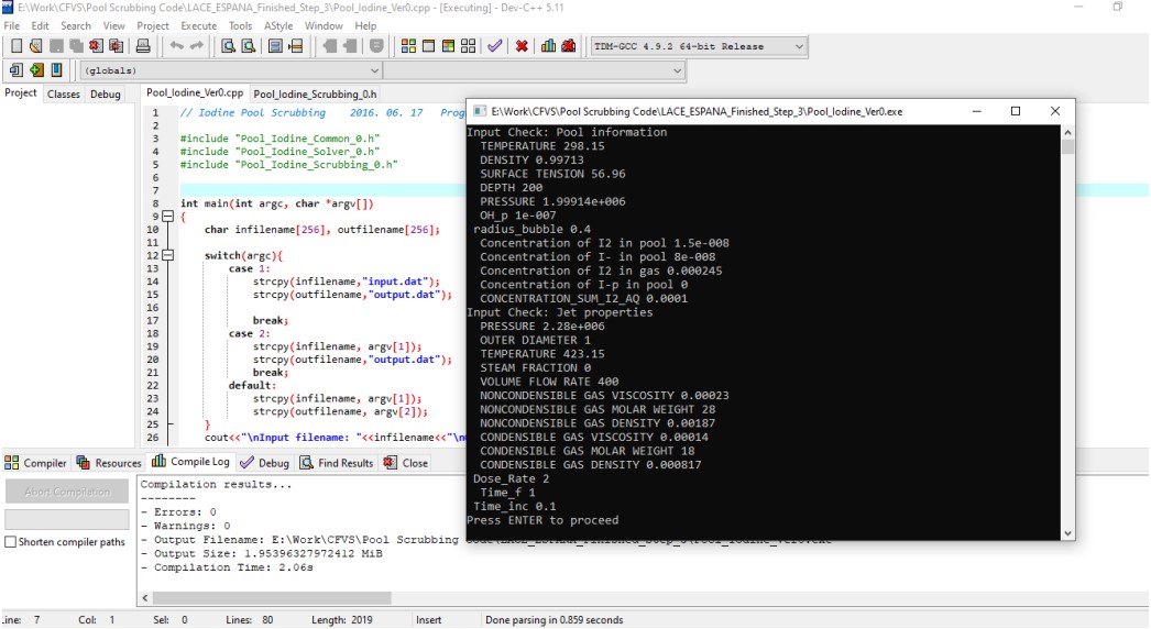 IRIS (Iodine Retention In Solution) has also been built on the existingSPARC code, to evaluate the capture ability of iodine in FCVS system (A Filtered Containment Venting System (FCVS) is an accident management system designed to minimize the release of fission products when releasing the pressure of the containment building in the case of a severe nuclear accident) through DF (Decontamination Factor) calculations (which is defined as the ratio of the mass entering to the mass exiting the pool). This code included pool diffusion and mass models, the hydrodynamic process and chemical reaction processand the interaction rate of the volatile iodine species is controlled by the formations of free radicals by radiolysis.