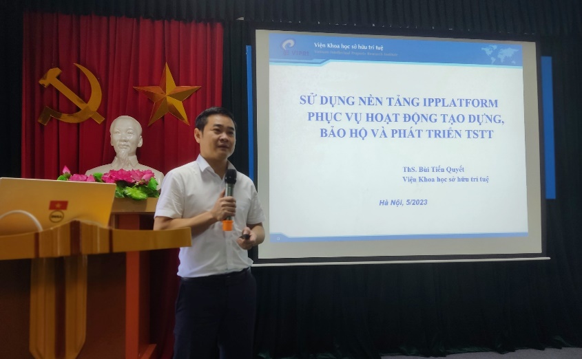 Tiếp theo ThS. Bùi Tiến Quyết – Trưởng phòng Đào tạo thông tin – Viện Khoa học Sở hữu trí tuệ trình bày tham luận “Sử dụng Nền tảng IPPLATFORM phục vụ hoạt động tạo dựng, bảo hộ và phát triển tài sản trí tuệ”. Mở đầu bài tham luận, ThS. Bùi Tiến Quyết đã giới thiệu qua một khái niệm cơ bản về sở hữu trí tuệ. Bài tham luận tập trung chủ yếu giới thiệu về nền tảng IPPLATFORM giúp tra cứu, đăng ký bảo hộ các tài sản trí tuệ. Ngoài ra, ThS. Bùi Tiến Quyết đã giới thiệu một số mô hình về các trạm IPPLATFORM đặt tại các sở khoa học công nghê, các viện nghiên cứu,… để giúp cho các đơn vị trong việc tra cứu các thông tin về sở hữu trí tuệ một cách nhanh chóng và thuận lợi hơn.