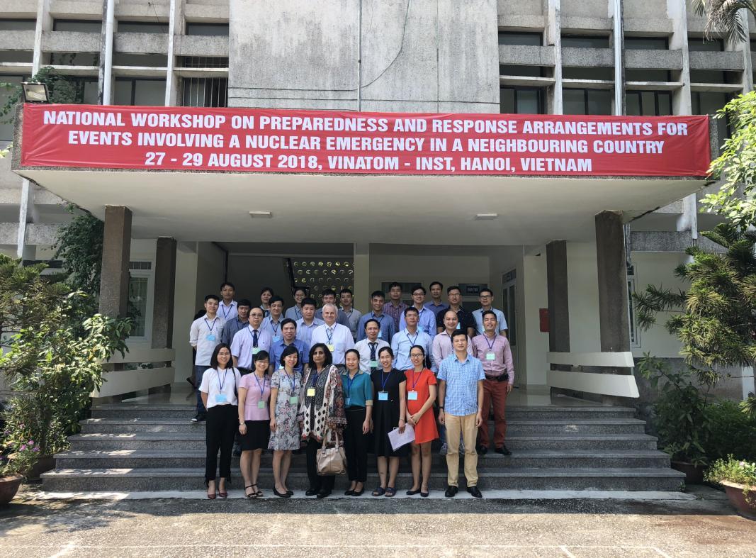 Trong 3 ngày từ 27/8 đến 29/8/2018, Viện Khoa học và Kỹ thuật hạt nhân (Viện KH&KTHN), Viện Năng lượng nguyên tử Việt Nam (Viện NLNTVN) phối hợp với Cơ quan Năng lượng nguyên tử quốc tế (IAEA) đã tổ chức thành công tốt đẹp Hội thảo quốc gia về “Chuẩn bị và sẵn sàng ứng phó với các sự kiện liên quan đến sự cố hạt nhân ở nước láng giềng” (National Workshop on Preparedness & Response Arrangements for Events Involving a Nuclear Emergency in a Neighbouring Country) tại Viện KH&KTHN.