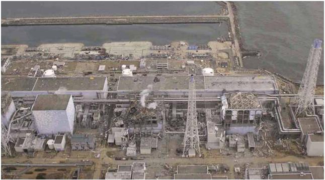 Hình ảnh nhà máy điện Fukushima sau tai nạn: sự cố này đưa vào khí quyển lượng phóng xạ nhất định được CTBTO và WMO phối hợp quan trắc trong quá trình tại nạn.