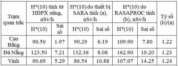 Bảng 2. là kết quả tính toán H*(10) từ số liệu phổ ghi nhận bởi thiết bị SARA bằng phần mềm RADAPROC V.1.