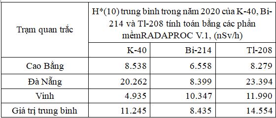 Bảng 2. H*(10) trung bình của các ĐVPX quan tâm ở một số trạm quan trắc trong năm 2020