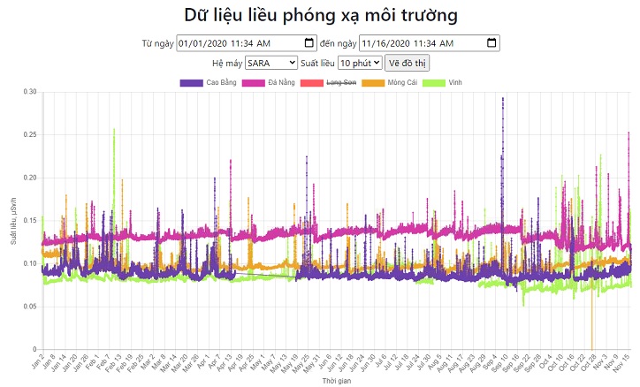 CSDL PXMT trực tuyến được tạo ra bởi 2 phần mềm trên đây gồm có H*(10), số liệu phổ gamma, suất liều của một số ĐVPX chủ yếu (40K, 214Bi và 208Tl) đo trong các khoảng thời gian khác nhau (10 phút, 1 giờ và 1 ngày) có cùng định dạng thống nhất. Đây là CSDL PXMT trực tuyến đầu tiên của Việt Nam và thường xuyên được cập nhật 24/24h tại Trung tâm điều hành mạng QT-CB PXMT quốc gia. CSDL PXMT trực tuyến này ngày càng lớn dầnnên vấn đề sao lưu dữ liệu hiện nay cũng đang được quan tâm.