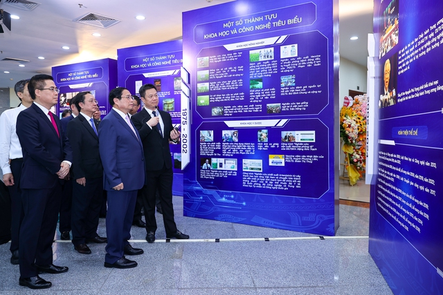 Trong khuôn khổ sự kiện, Thủ tướng Phạm Minh Chính và các đại biểu đã tham quan Triển lãm giới thiệu những thành tựu KH,CN&ĐMST tiêu biểu trong 65 năm qua và khu vực gian hàng trưng bày các kết quả nghiên cứu, sản phẩm của các lĩnh vực quốc phòng, ngân hàng, nông nghiệp, công nghiệp, giao thông, y tế, khoa học xã hội và nhân văn...