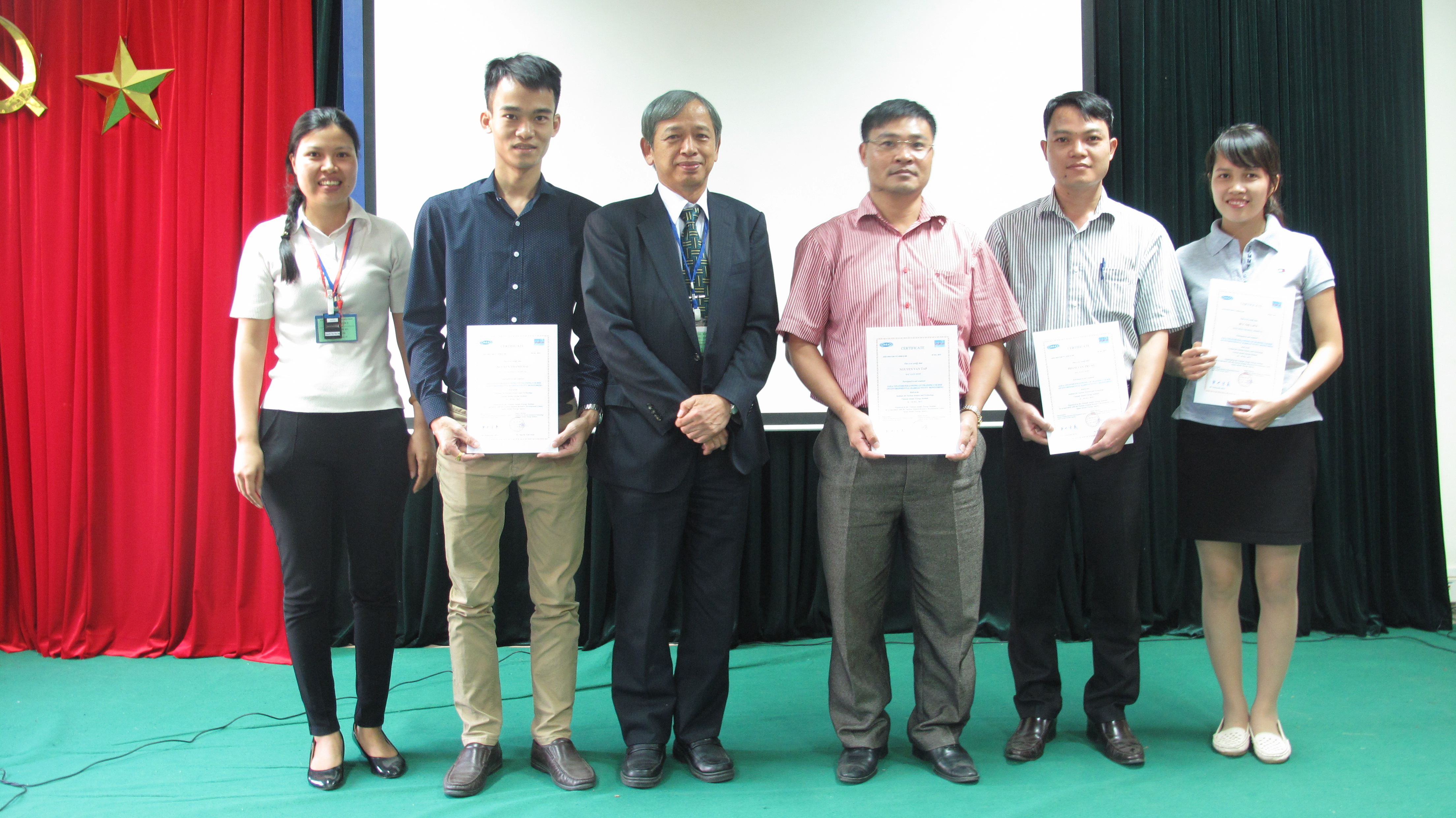 Kết thúc khóa đào tạo, đại diện Viện Khoa học và Kỹ thuật Hạt nhân, Phó Viện trưởng Nguyễn Tuấn Khải cùng với đại diện Cơ quan Năng lượng nguyên tử Nhật Bản, Nobuyshio Arai và Atsushi Birumachi đã trao chứng chỉ cho tất cả các học viên tham dự khóa học.