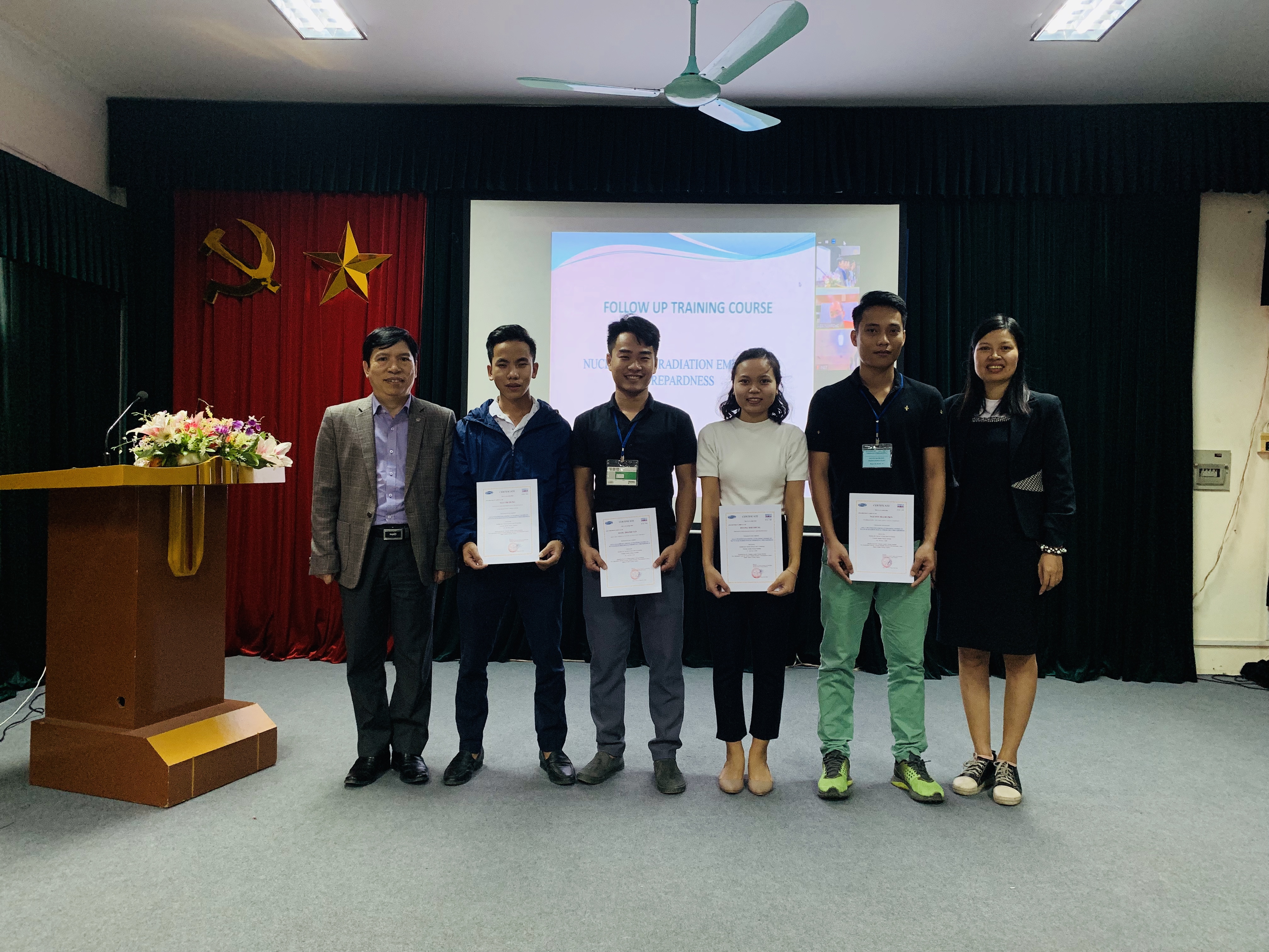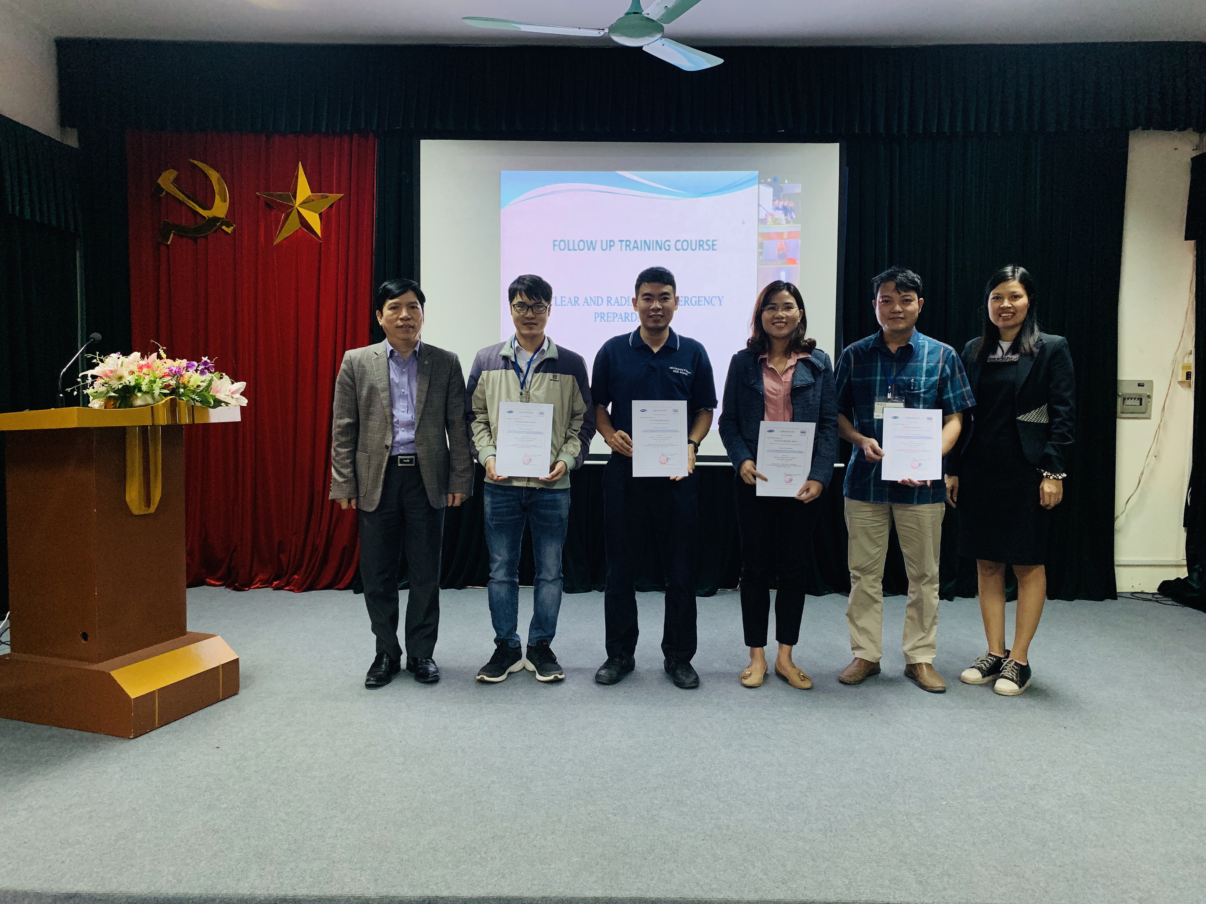 Khóa học đã kết thúc thành công tốt đẹp, toàn bộ học viên tham dự khóa học được cấp giấy chứng nhận đào tạo. Trong buổi lễ bế giảng khóa học, ông Phạm Đức Khuê, Viện trưởng Viện KH&KTHN gửi lời cảm ơn đến các chuyên gia Nhật Bản, đồng thời ông cũng đánh giá cao những nỗ lực của các giảng viên và học viên trong suốt thời gian học tập. Ông hy vọng, với những kiến thức và kỹ năng thực nghiệm từ khóa học sẽ là cơ sở giúp các học viên chủ động hơn trong việc tìm hiểu, nâng cao kiến thức và có thể sử dụng trong các hoạt động sẵn sàng ứng phó cũng như quản lý trong lĩnh vực ứng phó sự cố bức xạ và hạt nhân. Ngoài khóa đào tạo về Sẵn sàng ứng phó sự cố Bức xạ và hạt nhân, Viện KH&KTHN còn thường xuyên tổ chức các khóa đào tạo khác như Khóa đào tạo Quan trắc phóng xạ môi trường, Khóa đào tạo Ghi đo bức xạ. Viện KH&KTHN luôn sẵn sàng hợp tác cùng các đơn vị, sở, ngành thực hiện đào tạo và nghiên cứu triển khai các nhiệm vụ có liên quan.