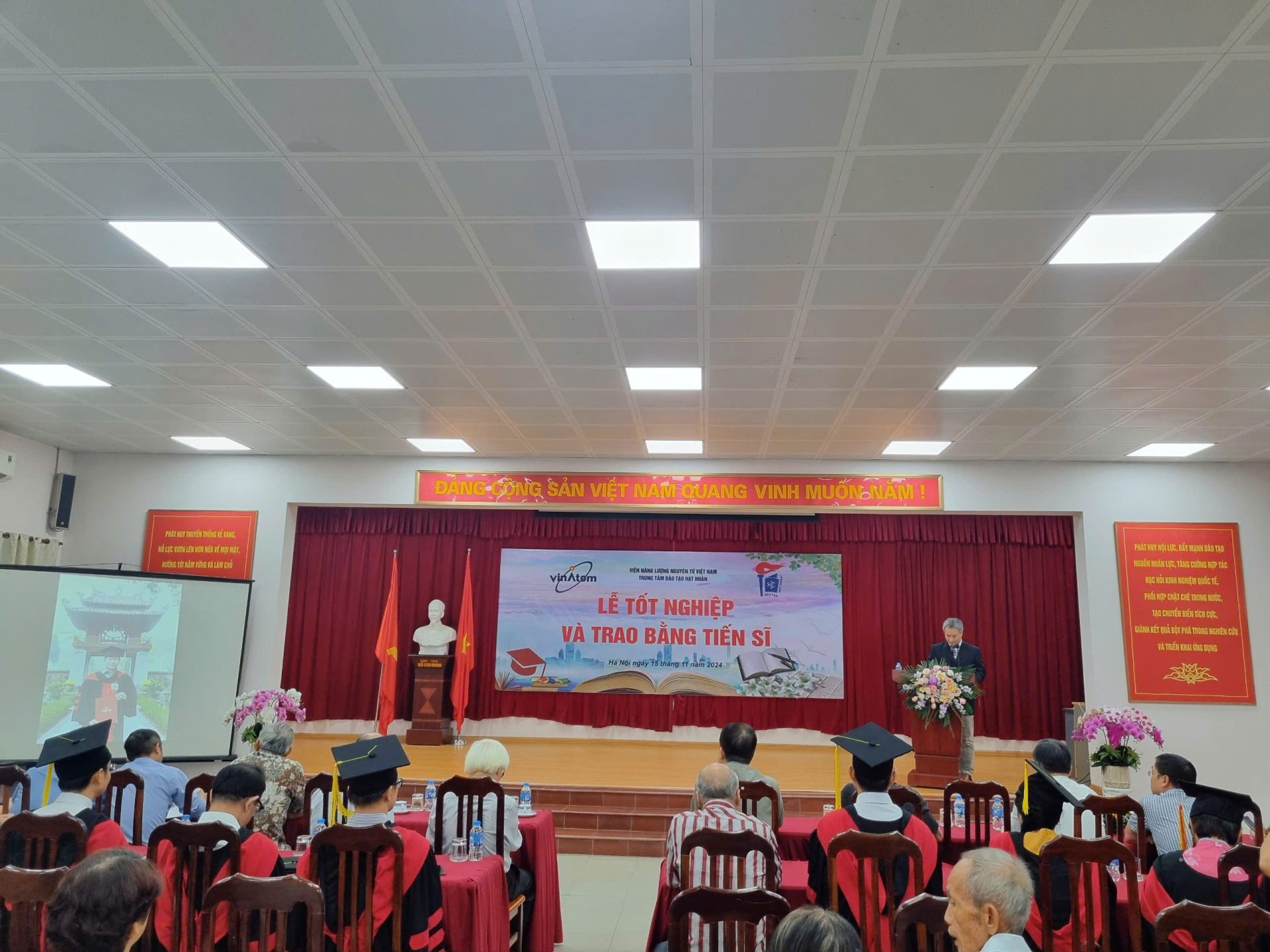 Để công nhận thành quả học tập và nghiên cứu của các nghiên cứu sinh đã hoàn thành khóa học. Ngày 15/10/2024, Trung tâm Đào tạo hạt nhân – Viện Năng lượng nguyên tử Việt Nam long trọng tổ chức Lễ Tốt nghiệp và trao bằng tiến sĩ cho các nghiên cứu sinh đủ điều kiện tốt nghiệp năm 2024.