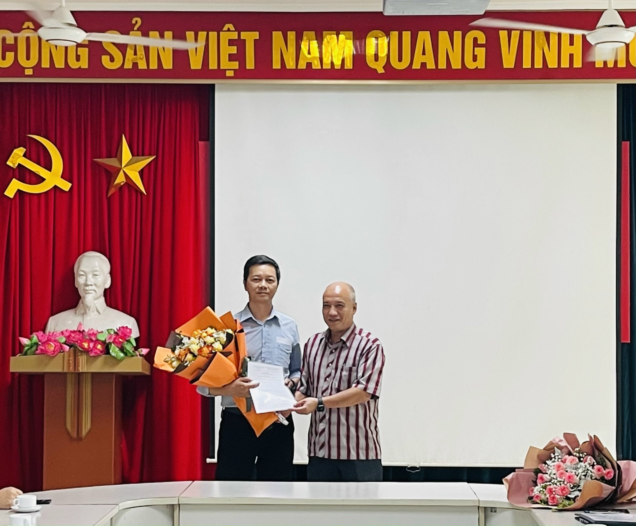 TS. Trần Ngọc Toàn Phó Viện trưởng Viện NLNTVN trao quyết định bổ nhiệm và tặng hoa chúc mừng ông Nguyễn Đức Tuấn