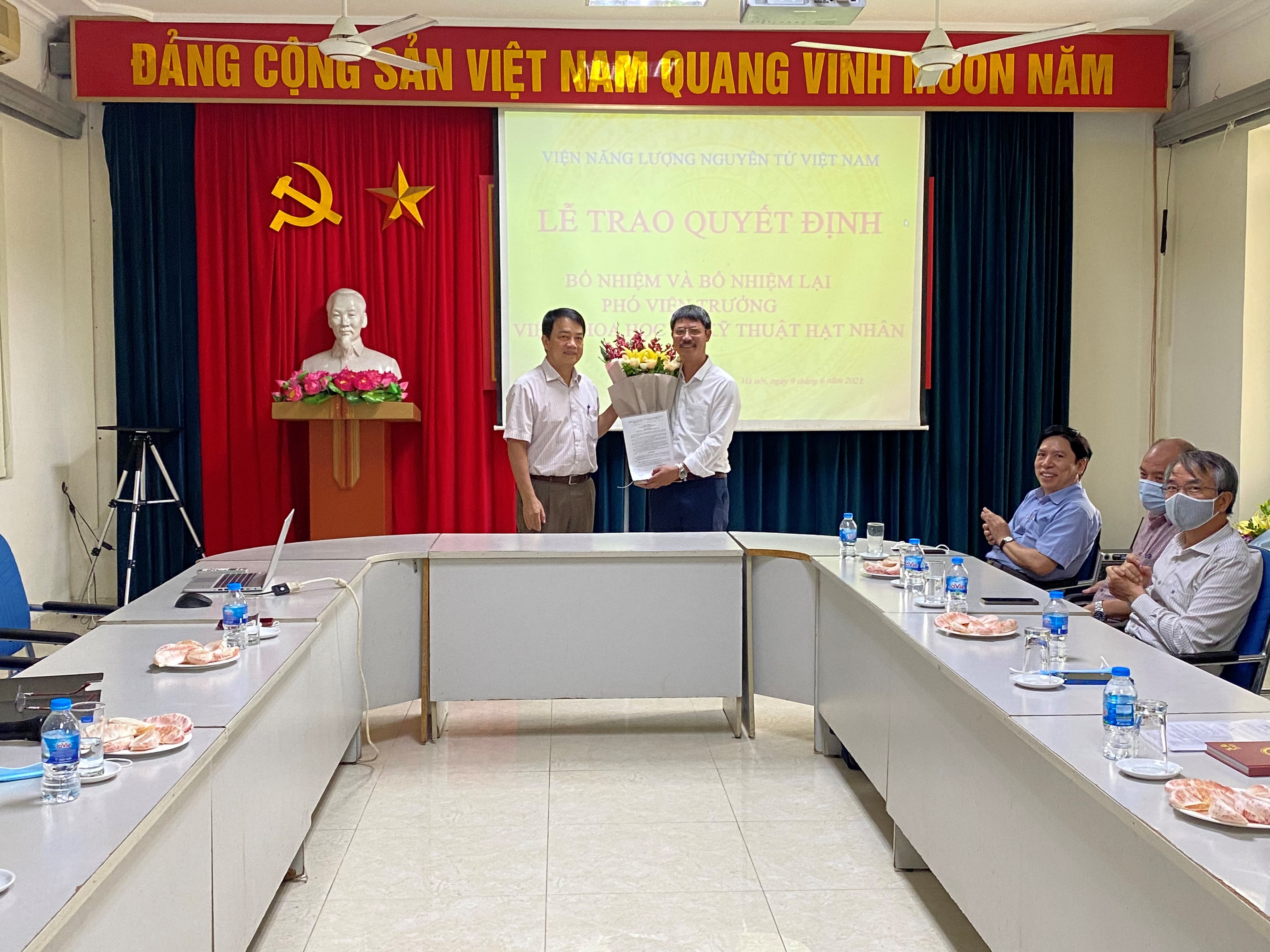 Thực hiện công tác kiện toàn Ban lãnh đạo quản lý đơn vị, chiều ngày 09/06/2021 tại Viện Khoa học và Kỹ thuật hạt nhân (KH&KTHN), Viện Năng lượng nguyên tử Việt Nam (NLNTVN) đã tổ chức Lễ công bố và trao quyết định bổ nhiệm có thời hạn đối với ông Phạm Ngọc Đồng giữ chức vụ Phó Viện trưởng và quyết định bổ nhiệm lại chức vụ Phó Viện trưởng Viện KH&KTHN đối với ông Nguyễn Hữu Quyết.