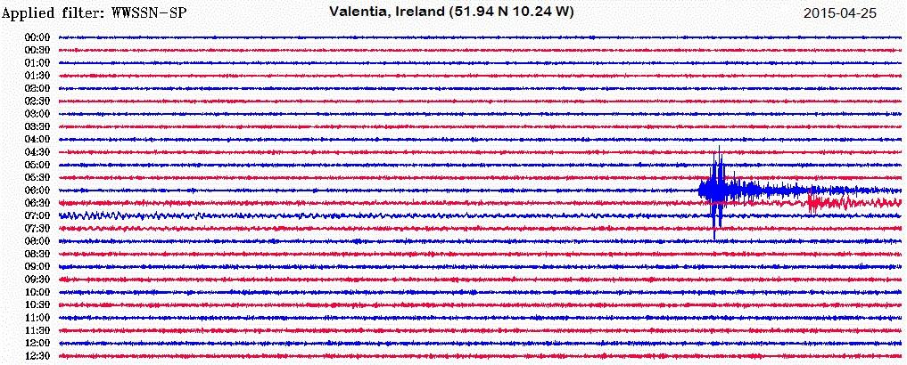 Dữ liệu sóng địa chấn ghi nhận tại Ireland do động đất tại Nepal ngày 25 tháng 4 năm 2015