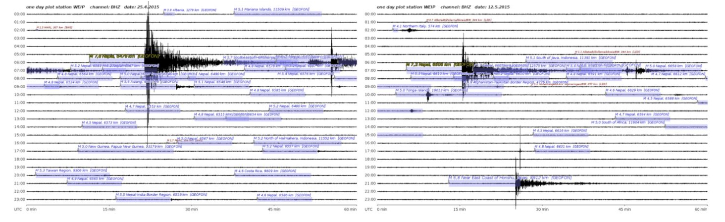 So sánh cường độ sóng địa chấn tại Nepal ngày 24/4 (phải) với ngày 12/5 (trái)
