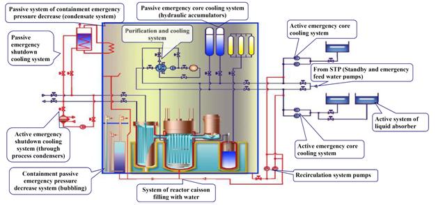 Khi xảy ra sự cố nứt vỡ vòng sơ cấp,theo thiết kế chất thải dạng rắn và lỏng được giữ lại trong nhà lò, chỉ có một phần chất thải dạng khí thoát được ra môi trường. Cụ thể, nước chứa phóng xạ đạt tới 38 m3 trong lò phản ứng, 48 m3 trong thùng chứa của nhà lò, 1,2 m3 trong khoang chứa thiết bị, khi tiến hành tẩy rửa có thể tạo thêm 30 – 50 m3 chất thải phóng xạ dạng lỏng; Chất thải phóng xạ dạng rắn tạo thành từ 10 – 15 m3 (tương đương với hoạt độ 70 – 100 GBq); Lượng phóng xạ phát thải ra môi trường tổng cộng từ 840 đến 1900 GBq, tương ứng với sự cố dự kiến và không dự kiến được.Trong trường hợp xảy ra sự cố, liều chiếu tới dân chúng được giới hạn ở mức 5 mSv/năm, thiết kế nhà máy kỳ vọng liều dân chúng phải nhận ở vị trí cách nhà máy 50 m là 0,1 mSv/năm.