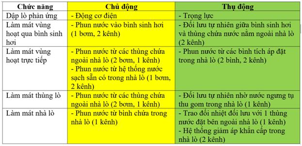 Bảng tóm tắt các hệ thống an toàn và chức năng hoạt động trong thiết kế của AL (Nguồn: ARIS)