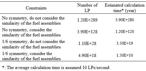 Table 1. Estimation of the number of possible LPs and calculation time for the VVER-1000 MOX core