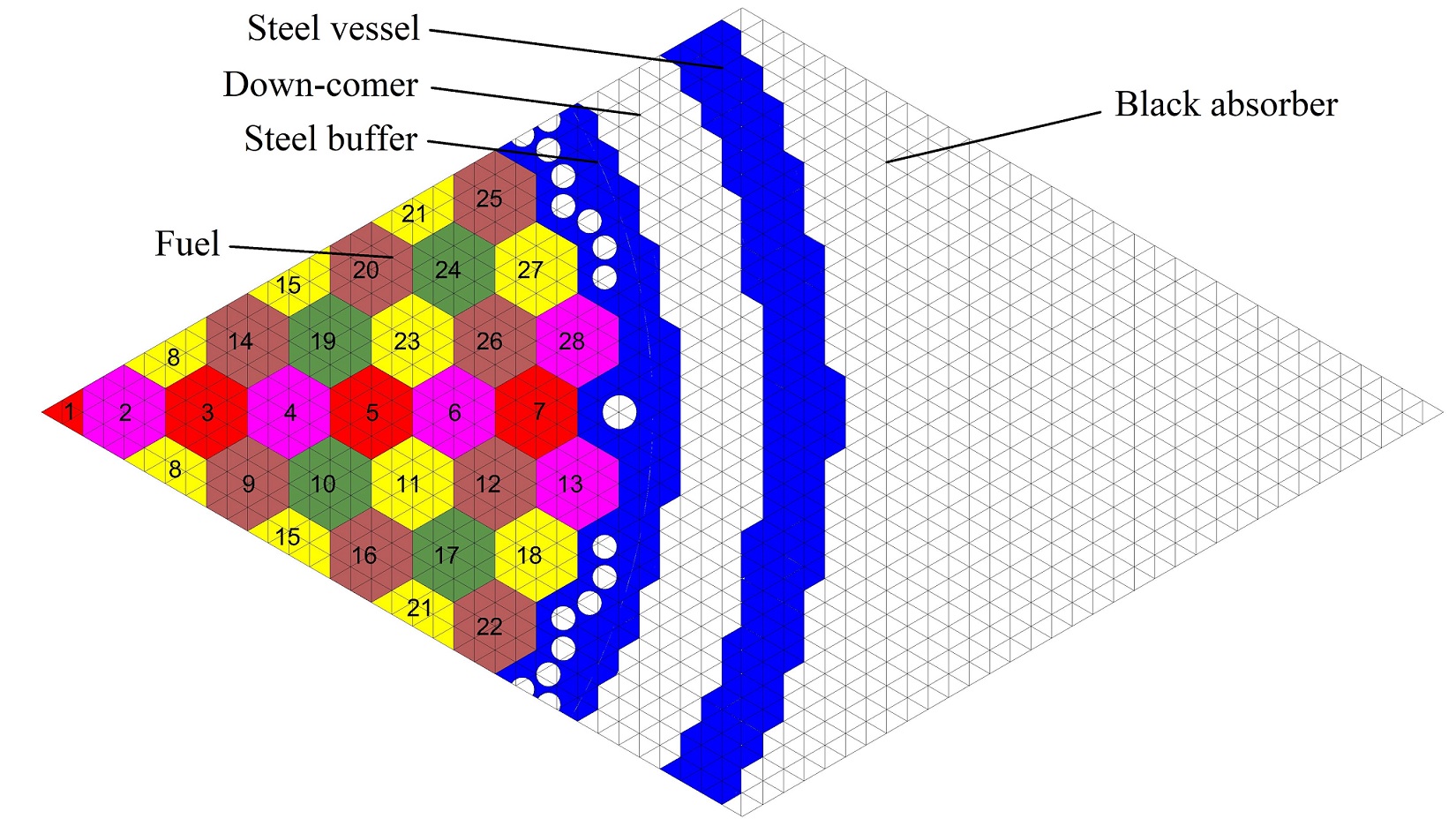 Figure 1. VVER-1000 core model with 24 triangular meshes per assembly in the LPO-V code