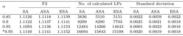 Table 4. Comparison of the SA, ASA and ESA methods with the F2