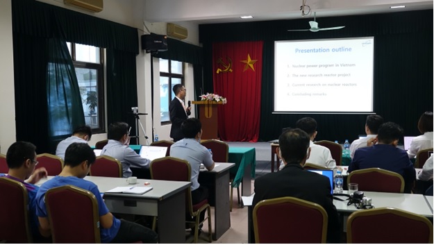 TS. Phạm Như Việt Hà – Viện KH&KTHN trình bày bài giảng về Tình hình nghiên cứu lò phản ứng hạt nhân tại Viện Năng lượng nguyên tử Việt Nam