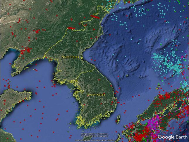 Hình 3: Khoảng cách từ cú sốc của vụ thử hạt nhân lần 6 của CHDCND Triều Tiên với sự kiện địa chấn sau đó 8 phút .
