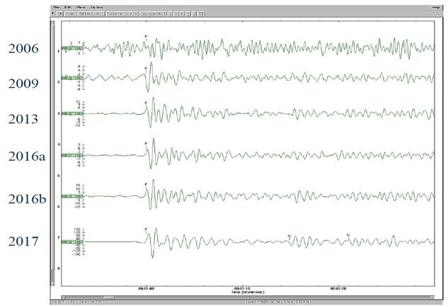 Kết quả so sánh các tín hiệu địa chấn trong 6 lần CHDCND Triều Tiên thử hạt nhân từ năm 2006 đến năm 2017 được biểu diễn trên hình 6.