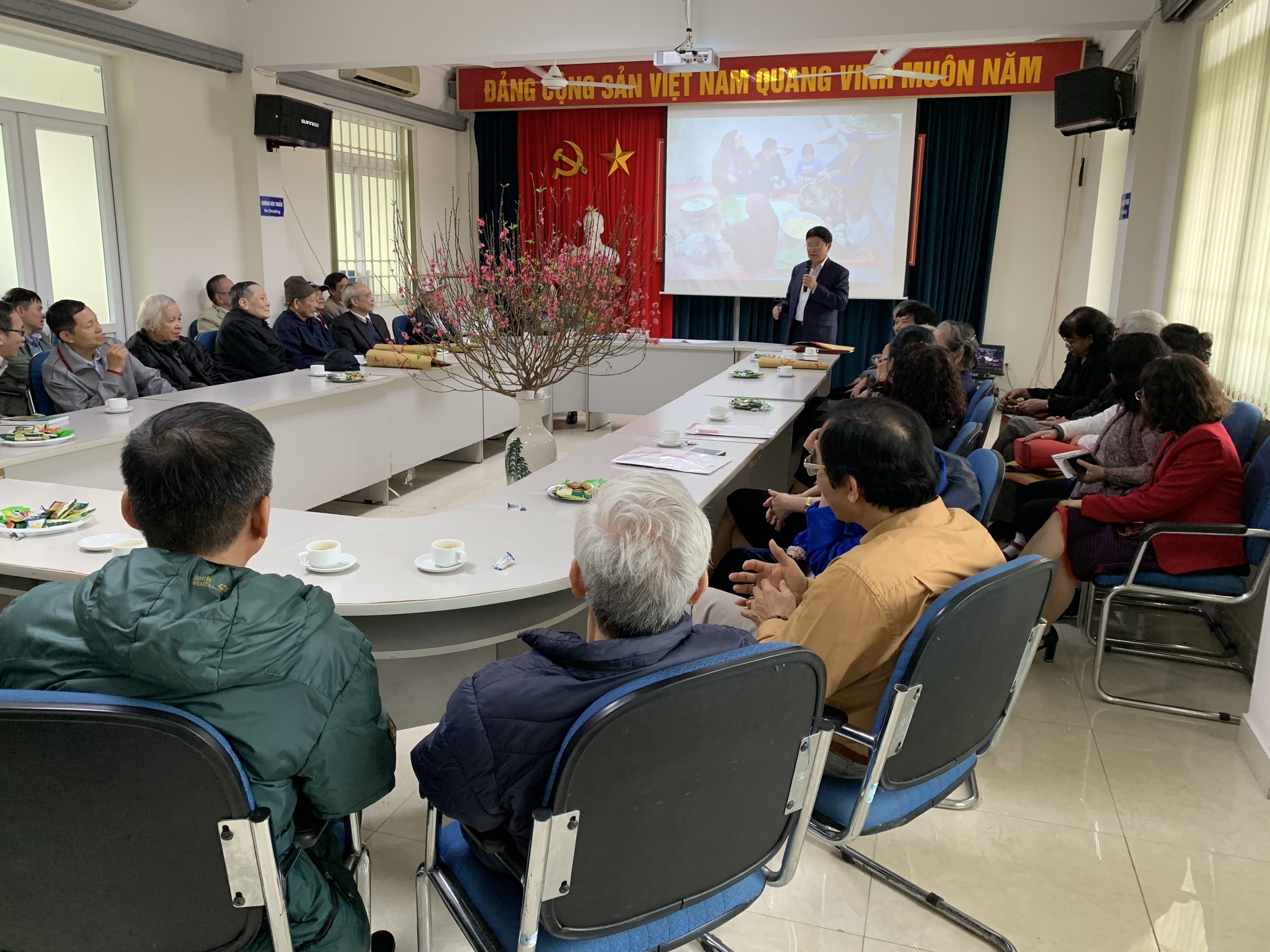 Sáng cùng ngày, BLĐ Viện cũng đã tổ chức buổi gặp mặt và chúc tết cán bộ hưu trí đã từng công tác tại Viện. Đây là hoạt động thường niên, là nét đẹp văn hóa được Viện KH&KTHN đã được duy trì thực hiện trong nhiều năm qua. Tham dự buổi gặp mặt có BLĐ Viện KH&KTHN, lãnh đạo các phòng chức năng và các đơn vị trực thuộc cùng gần 40 cán bộ hưu trí của Viện qua các thời kỳ.